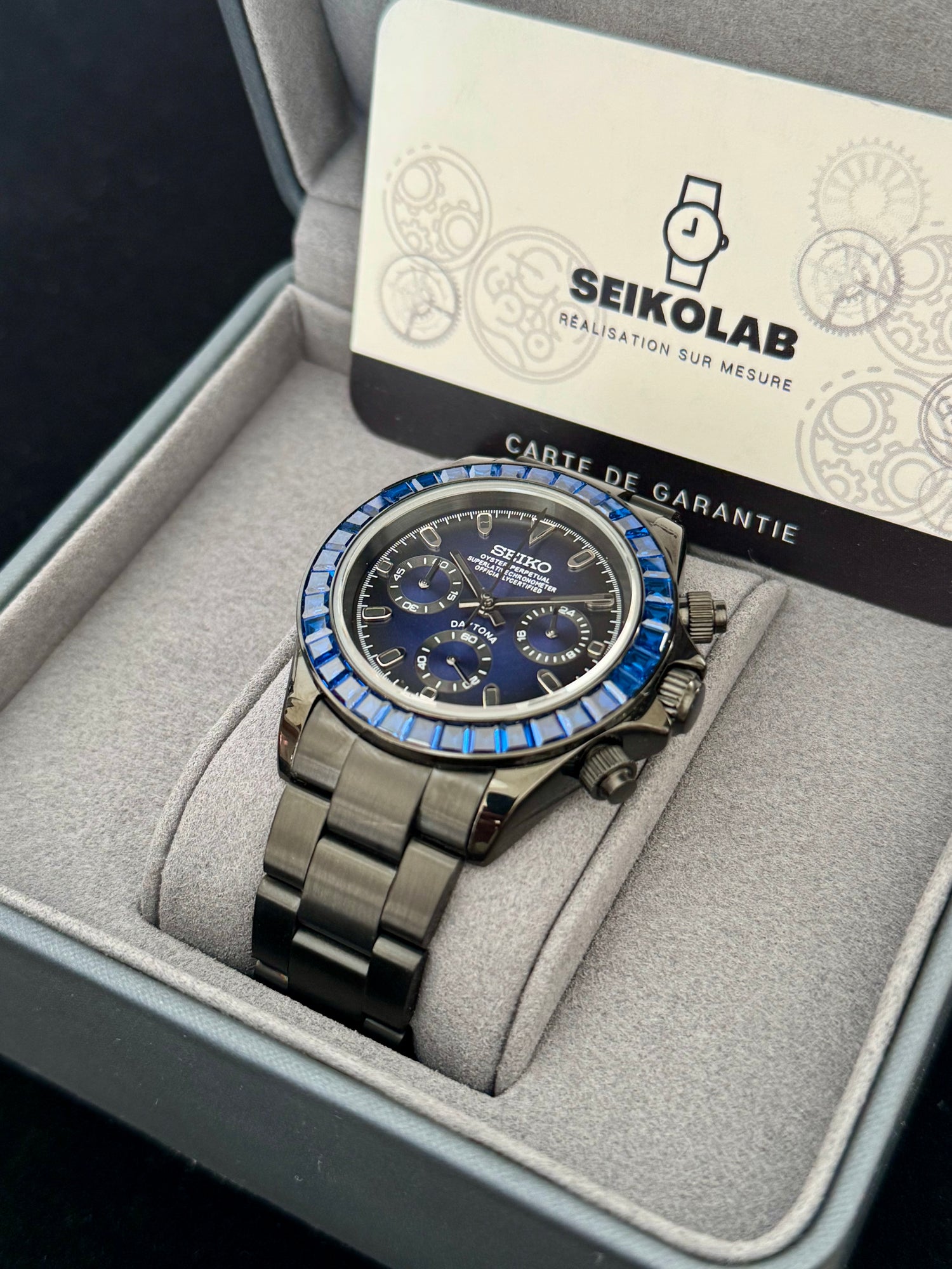 Nos montres modifiées sont entièrement assemblées et réglées dans nos ateliers afin d’assurer une précision de +10s/jour et une finition haut de gamme.